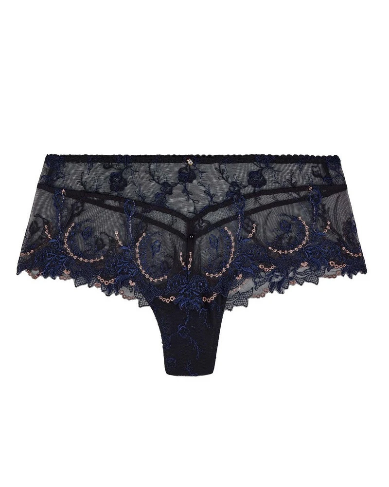 La culotte Saint Tropez de la collection Amour Précieux assure confort et douceur de par ses matériaux de grande qualité. il offre un look chic et sexy avec sa coupe échancré et son jeu de transparence de la matière.
