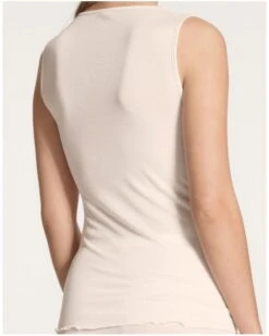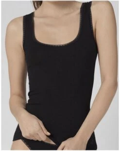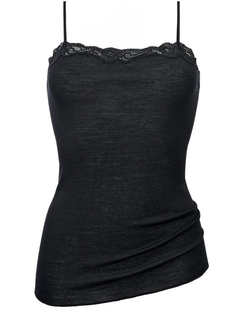 Le débardeur à bretelles spaghettis Richesse Lace de la marque Calida est le mélange parfait entre laine et soie, ce qui vous permettra d’être au chaud tout l’hiver. Il possède des bretelles ajustables, ce qui lui permet de s’adapter au mieux à chaque morphologie. Orné de dentelle fine, il vous offrira un look raffiné et chic tout en étant confortable.