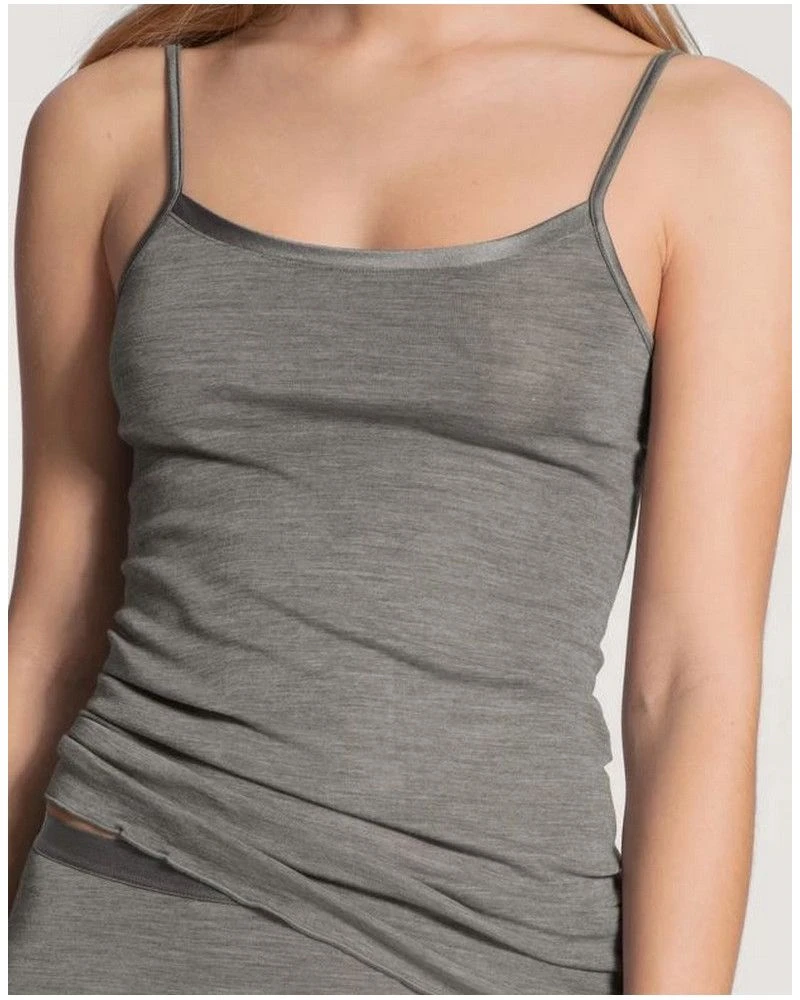 Le débardeur à bretelles spaghettis True Confidence de la marque Calida est le mélange parfait de laine et de soie qui vous apportera douceur et chaleur tout au long de la saison hivernale. Il possède des bretelles ajustables ce qui lui permet de s’adapter au mieux à chaque morphologie.