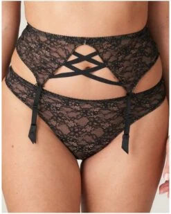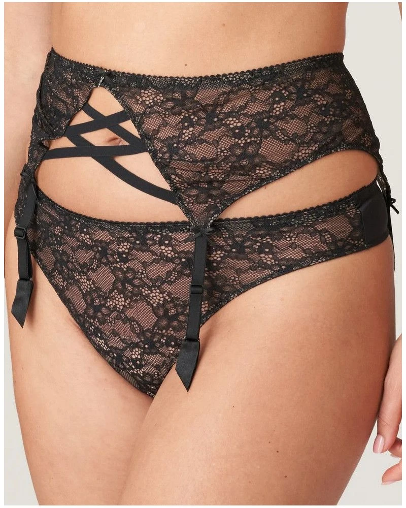 Porte-jarretelles sexy en dentelle avec des découpes très tendance. Dentelle légère dans un noir élégant : parfait pour les fêtes et sous toutes vos tenues.