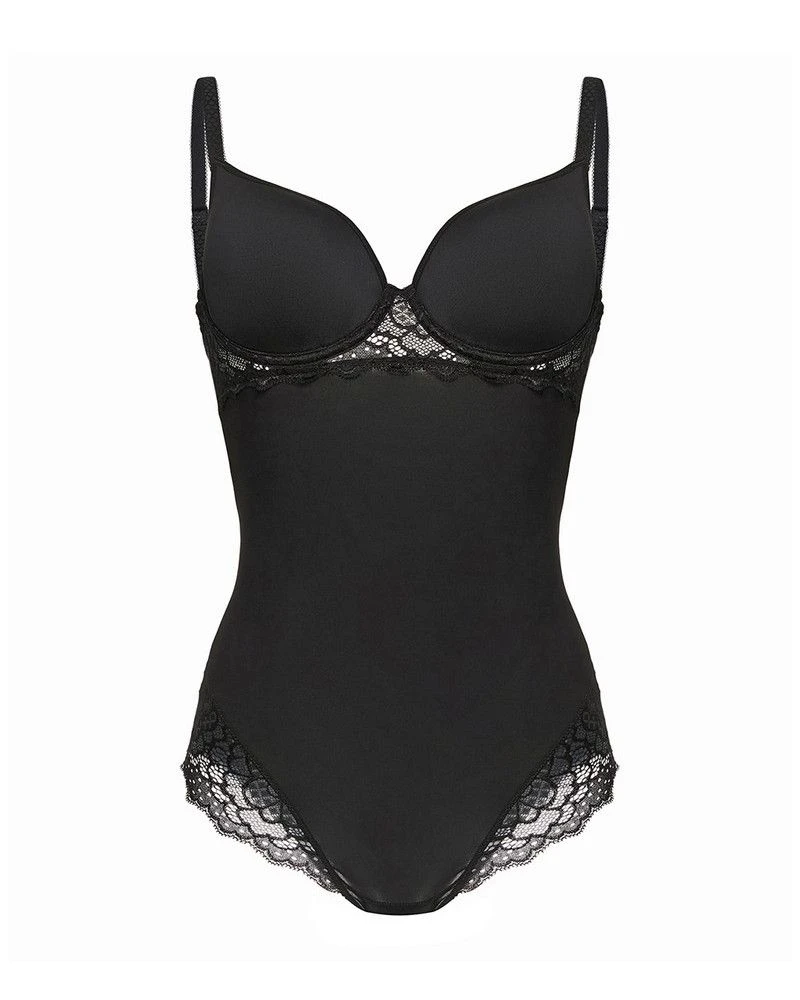 Ce body Caresse de Simone Pérèle est confectionné en maille douce et extensible afin de sculpter parfaitement votre silhouette. Il possède des bonnets à coques intégrées en maille spacer légère, pour vous offrir un confort optimal et un galbe parfait de la poitrine.