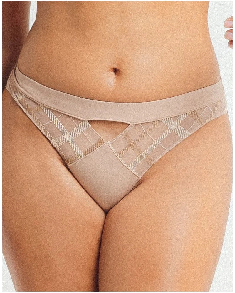 Le slip de la collection Albanach par Louisa Bracq offre une forme sophistiquée avec une légère ouverture sur le devant. Le motif quadrillé est transparent pour un effet ultra séduction, il est accompagné d’une ceinture et un dos unis.