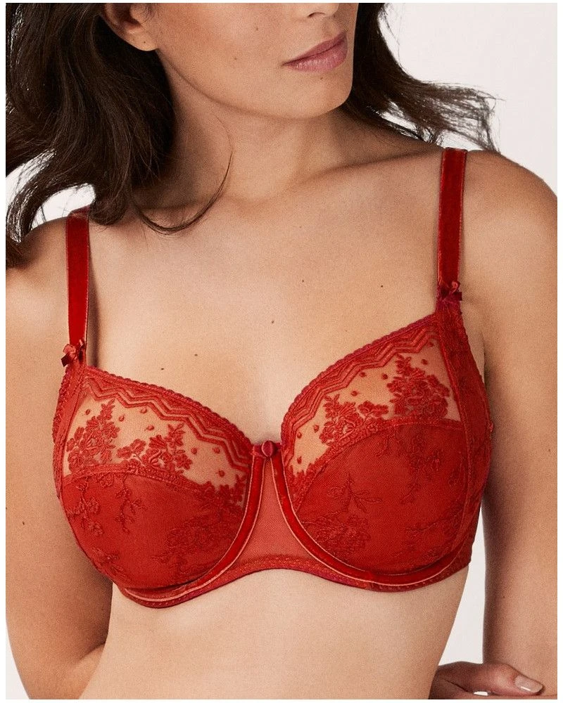 La collection Ellen de la marque de lingerie Empreinte symbolise, dans sa ligne, le luxe des belles matières. Les modèles sont ornés de bouquets de roses dessinés sur la broderie et de velours. Cette gamme mélange haute qualité et émotion.
