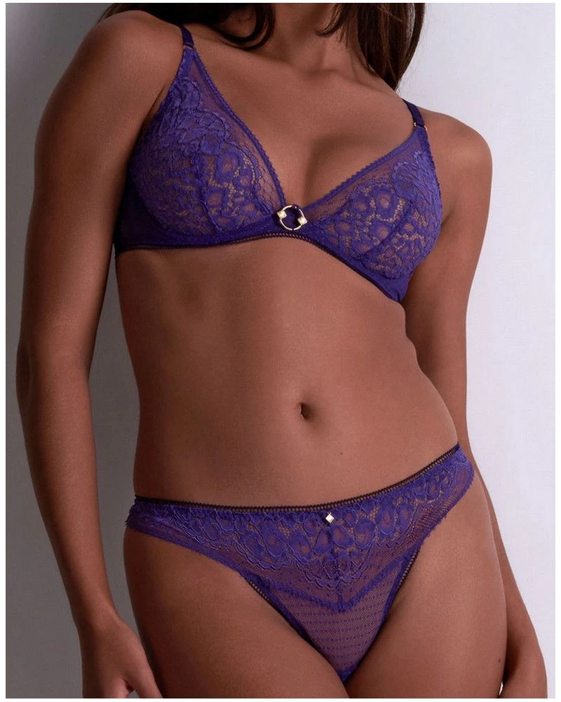 Le soutien-gorge triangle de la collection Illusion Fauve assure un look sexy et moderne de par sa coupe et son décolleté plongeant, le tout sublimé par un bijou à l’entre-gorge.